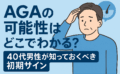 薄毛は生活習慣でも進行しますが、AGA(男性型脱毛症)の場合は“医療レベル”のケアが必要になることもあります。 とはいえ、どこで判断すればいいのか分かりにくいですよね。